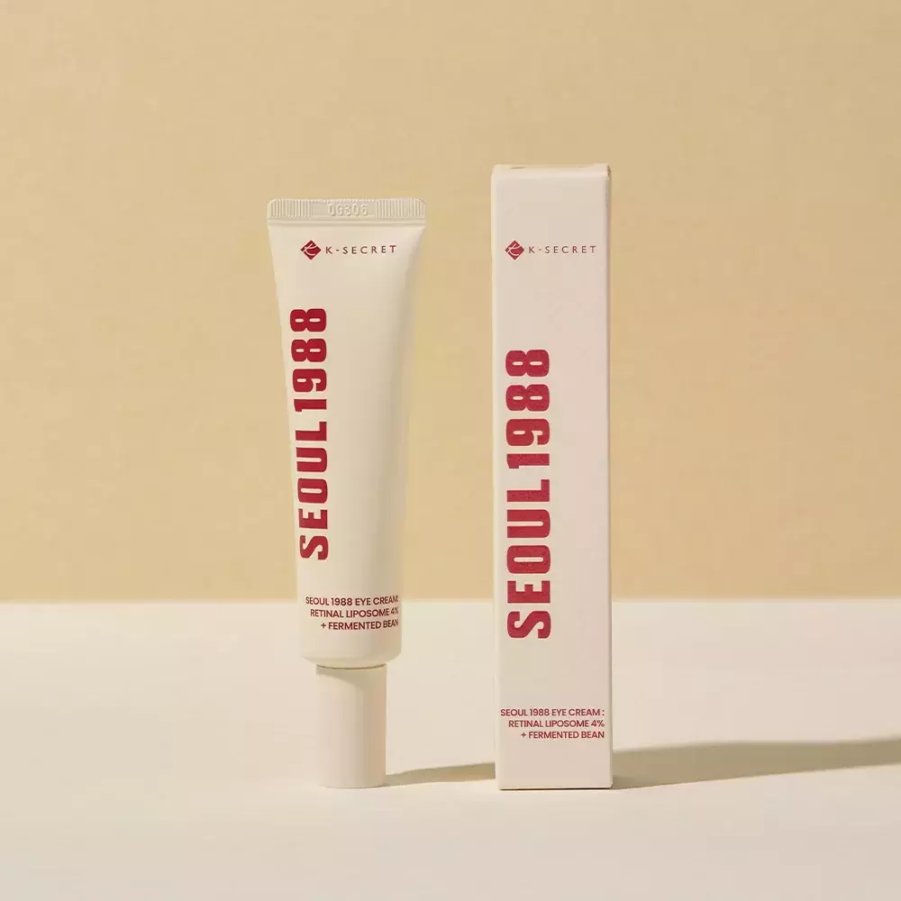[K-Secret] SEOUL 1988 Eye Cream Retinal Liposome 4% + Fermented Bean es una crema de ojos intensiva, de textura cremosa y no grasa, formulada con Retinal Liposome 4% para un cuidado antiedad efectivo en el contorno de los ojos. Diseñada para reducir arrugas, mejorar la elasticidad, tratar la pigmentación y perfeccionar la textura, esta crema actúa hasta 11 veces más rápido que el retinol convencional gracias a la potente acción del retinal.